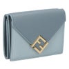 上質な質感の異なる2タイプのレザーを使用し、ブランドの『F』の文字が斜めに向い合せになった『FFダイヤモンド』のメタルパーツが斬新なデザインの3つ折財布。コンパクトながら、小銭入れ、カードポケットなど機能性も充実。プレゼントにもおすすめです。