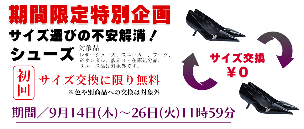 - サイズ交換無料は≪初回のみ≫となります。