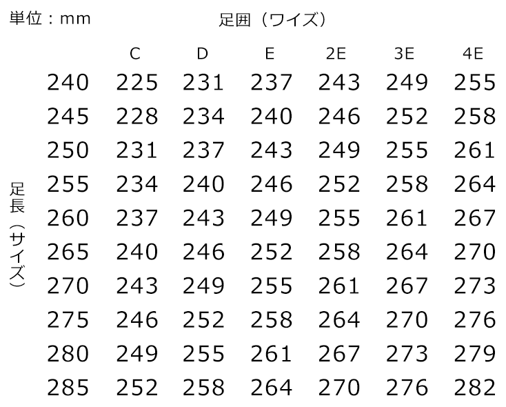 国産の靴はJIS規格によりワイズが決まっているため、基本的にどの靴でも共通です。